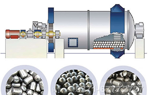 球磨機工作時主要是利用研磨體在磨倉內隨著筒體的回轉而對物料進行撞擊,致使物料被研磨成粉。球磨機的筒體為長形圓筒,筒內裝有研磨體,研磨體一般為鋼制圓球,并按不同直徑和一定比例裝入筒中,研磨體也可用鋼段。根據(jù)研磨物料的粒度加以選擇,物料由球磨機進料端空心軸裝入筒體內,當球磨機筒體轉動時候,研磨體由于慣性和離心力作用,摩擦力的作用,使它附在筒體襯板上被筒體帶走,當被帶到一定的高度時候,由于其本身的重力作用而被拋落,下落的研磨體像拋射體一樣將筒體內的物料給擊碎。